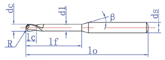 兩刃深溝球刀LBEM2-HS:R0.1~2.0mm