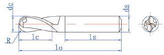 高性能型訂貨號 | 球半徑 | 刃長 | 柄徑 | 總長 |