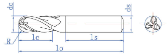 BEM 整體硬質合金三刃球頭銑刀--高性能型