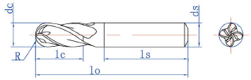 基準型訂貨號 | 球半徑 | 刃長 | 柄徑 | 總長 |