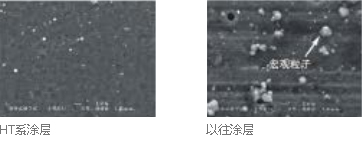 HT系涂層抑制涂層表面產生宏觀粒子,改善了平滑性,以降低摩擦阻力,提高耐熔腐性。